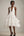Vestido marfil A Line con escote en V y volantes de lunares negros con mangas abullonadas
