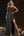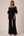 Vestido de invitada de boda largo de satén negro con cuello barco de manga larga en línea