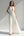 Vestido formal largo plisado de gasa con cuello halter marfil
