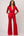 Vestido formal largo rojo con volantes y hombros descubiertos