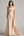 Elegante vestido de fiesta largo de satén con hombros descubiertos en línea A color champán