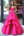 Vestido de fiesta largo de satén alto y bajo fucsia princesa