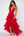 Vestido formal de tirantes de espagueti de gasa roja con volantes