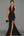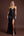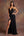 Vestido formal de gasa negro con escote en V profundo de una línea