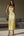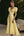 Vestido formal amarillo de satén de línea A con escote en V y mangas abullonadas