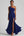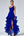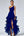 Vestido formal asimétrico de raso azul marino con volantes