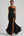 Vestido formal negro con volantes en un hombro y abertura