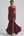 Vestido formal largo sirena burdeos con hombros descubiertos