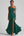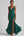 Vestido formal largo con volantes en verde oscuro con escote en V
