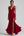 Vestido formal con volantes sirena burdeos sin tirantes