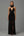 Vestido formal de terciopelo negro con hombros descubiertos de manga larga