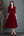 Vestido de trabajo de terciopelo burdeos con cuello en V y mangas medias