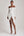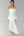 Un vestido de graduación blanco plisado con volantes en el hombro