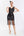 Vestido ajustado negro brillante con cuello en V dorado de los años 20 con flecos
