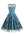 Vestido azul A Line con escote en V de la década de 1950 y mangas cortas