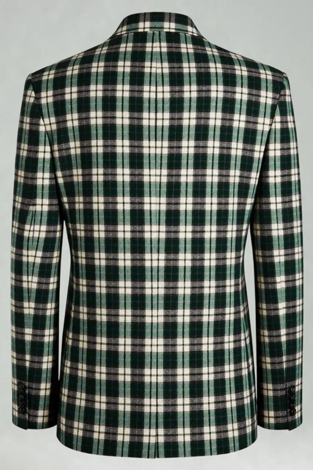 Trajes de Fiesta de 2 Piezas con Solapa de Pico de Rejilla Verde Negro para Hombres