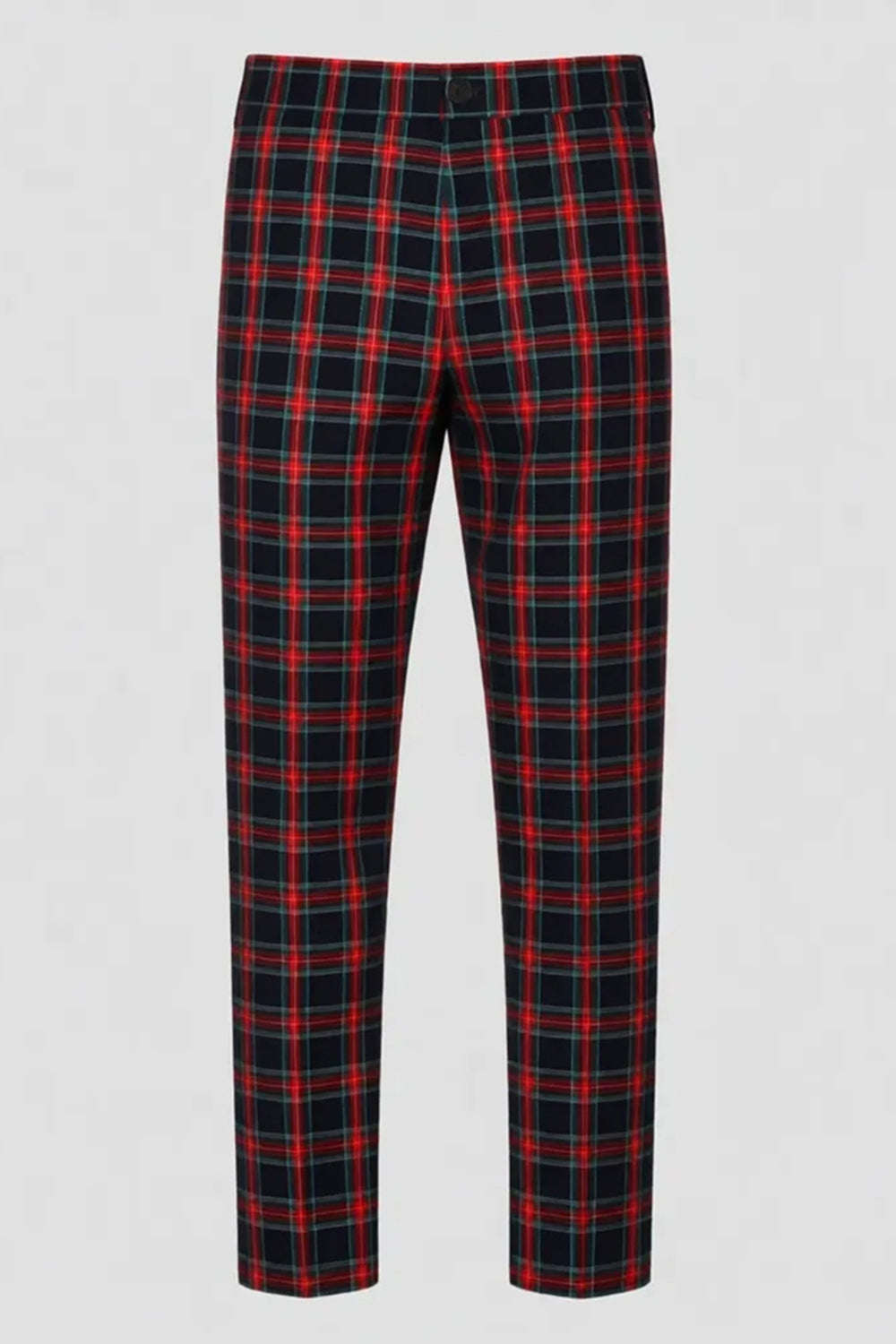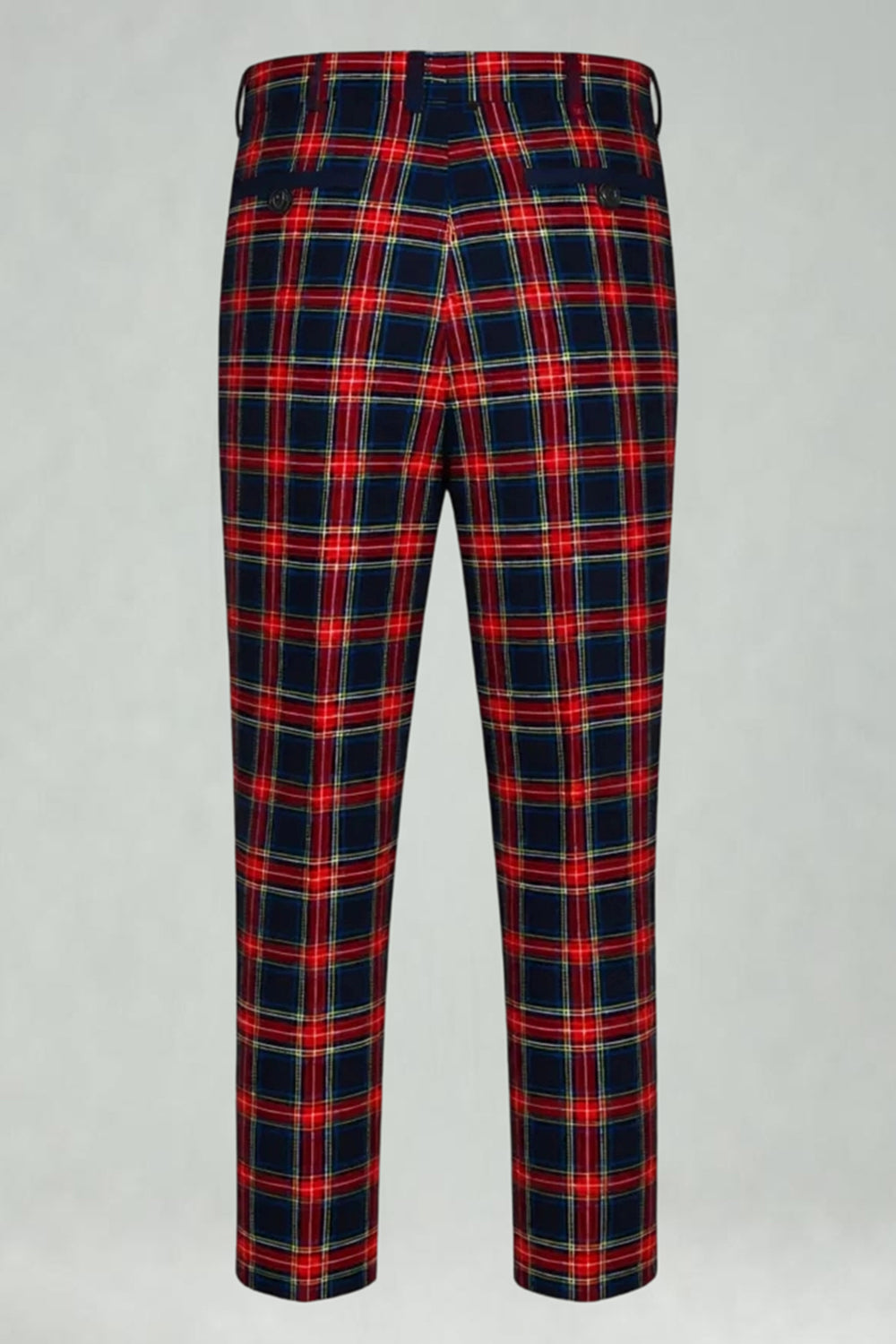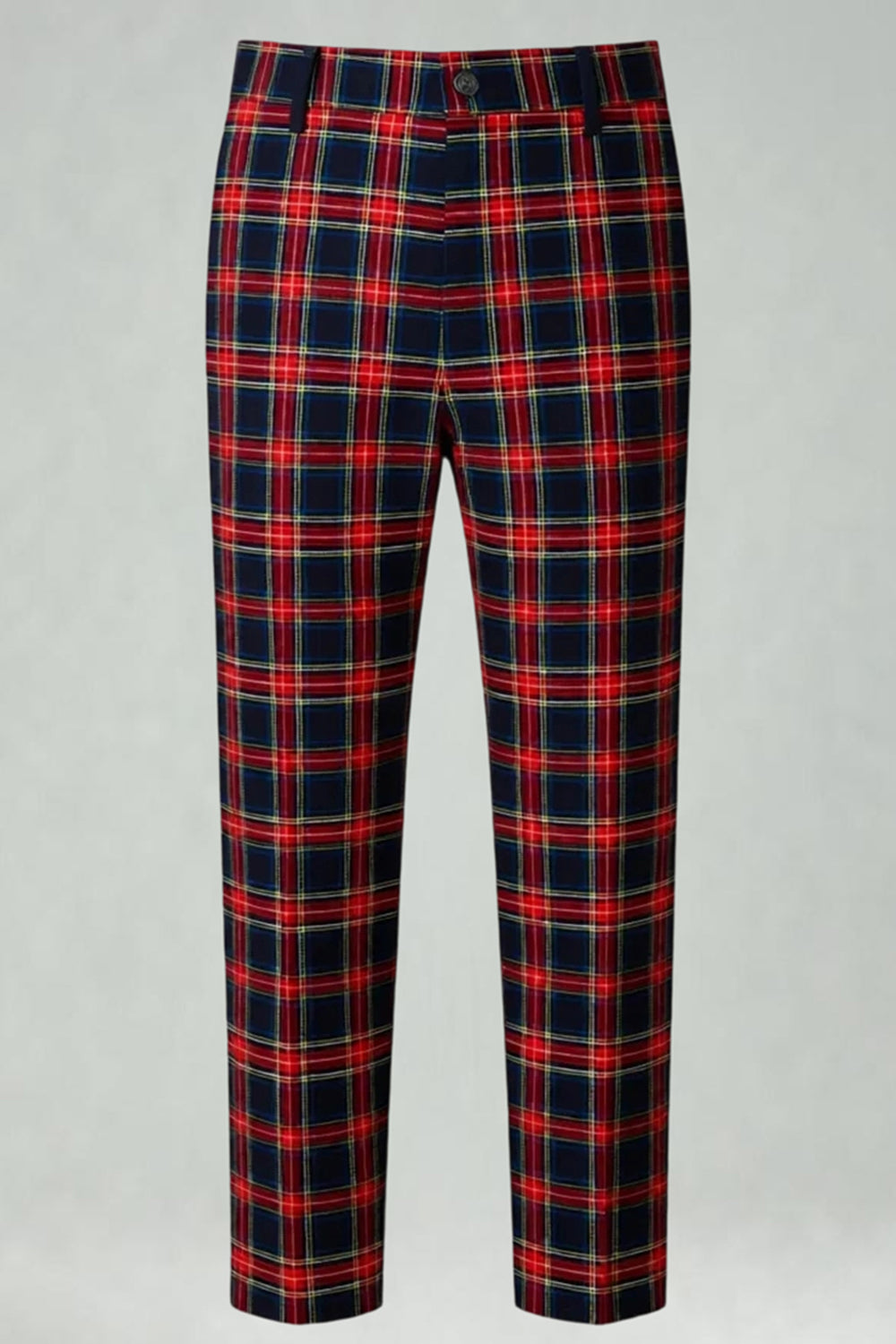 Trajes de Fiesta de 2 Piezas Negros Rojos con Solapa de Pico de Rejilla Doble